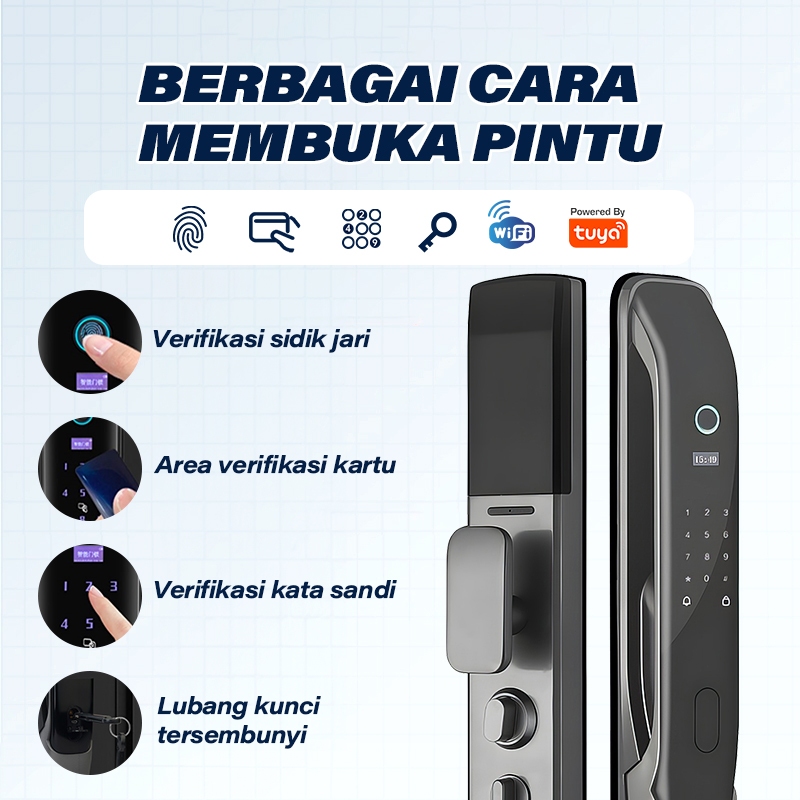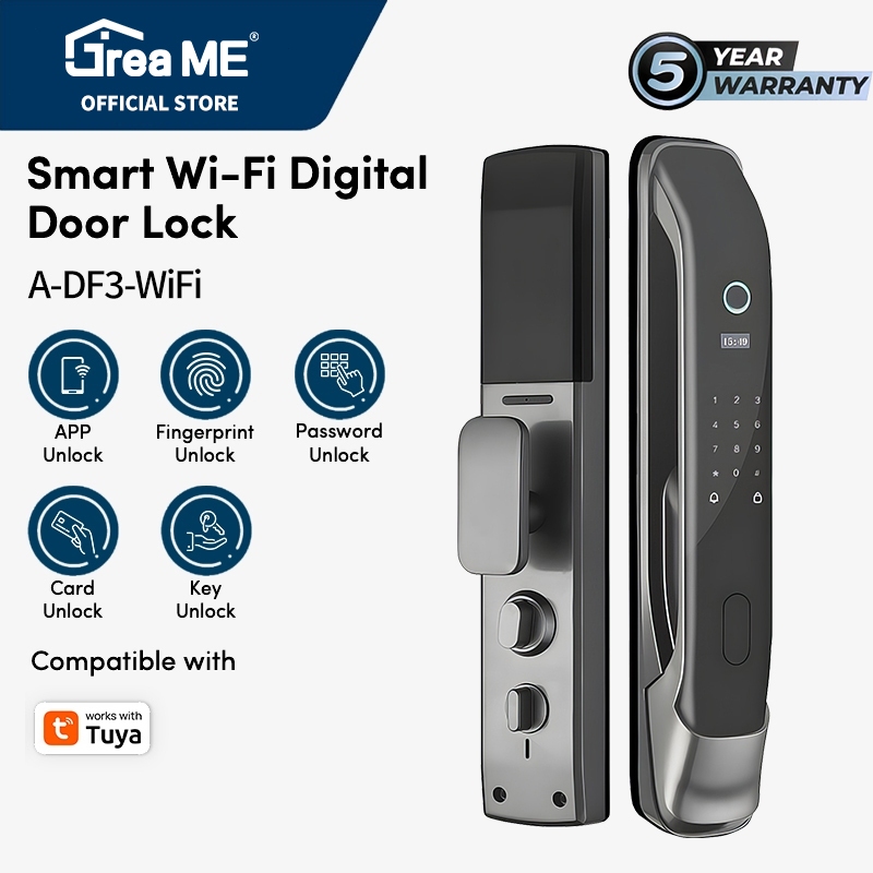 GreaME Kunci Pintu Digital Smart Door Lock TUYA WiFi Kontrol Aplikasi Kamar Tidur Fingerprint Kunci Pintu Rumah | DF3