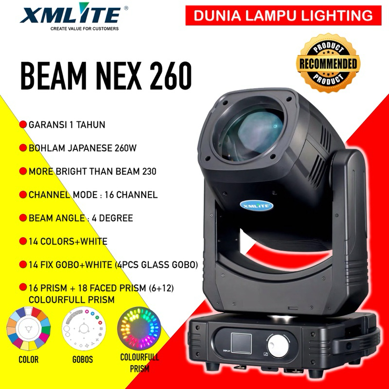 LAMPU STAGE LIGHTING LAMPU PANGGUNG MOVING HEAD BEAM XMLITE NEX260 NEX 260 260W GARANSI 1TH