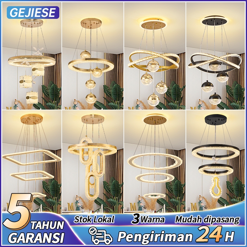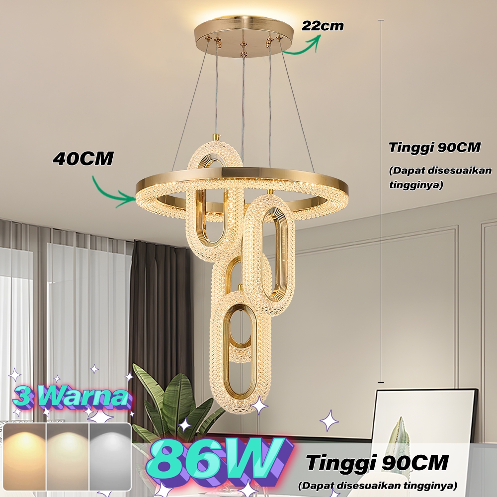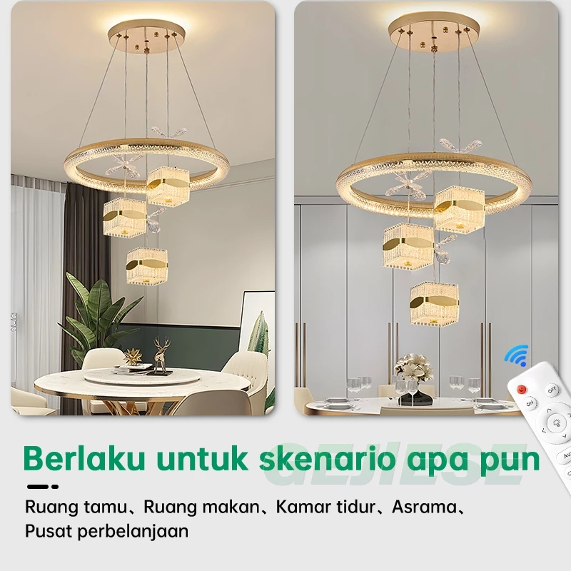 Lampu Gantung KRISTAL RUANG TAMU Modern 3Warna Remote Contol Pelindung Mata Bahan QUALITY PREMIUM