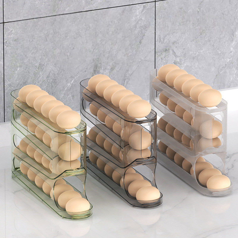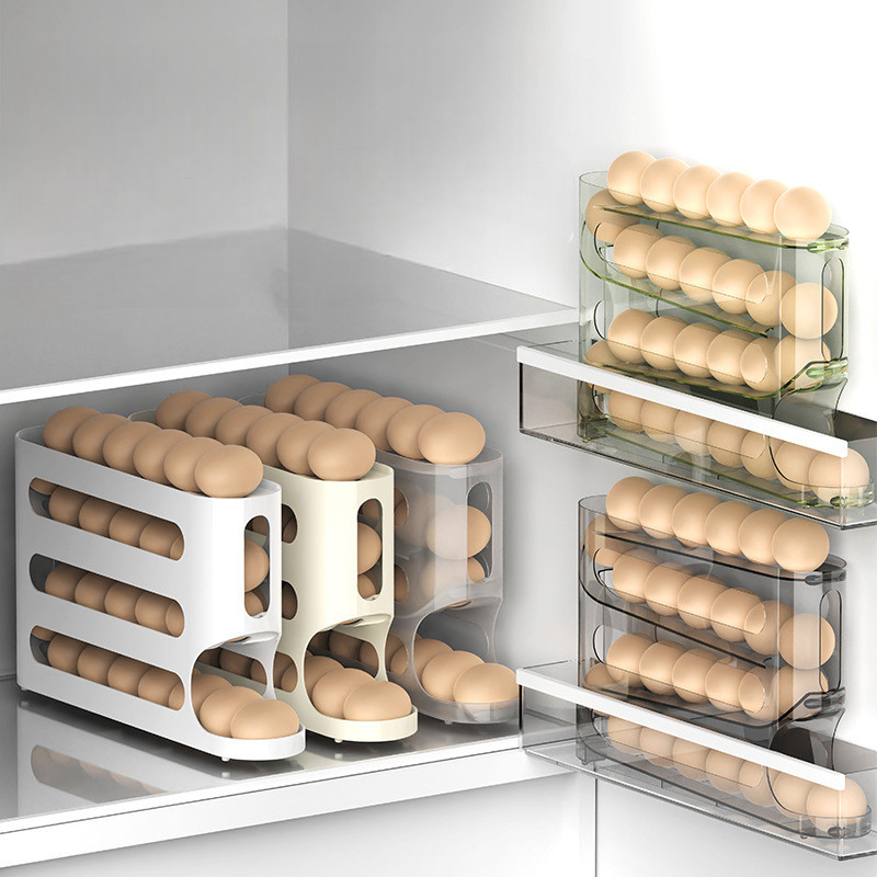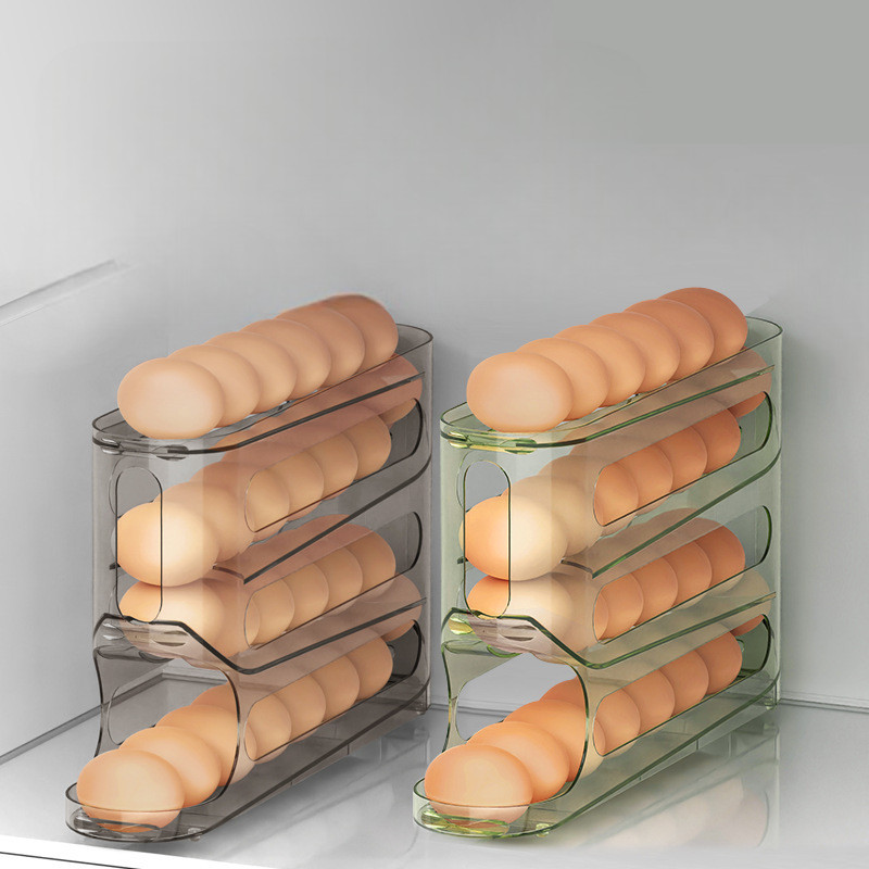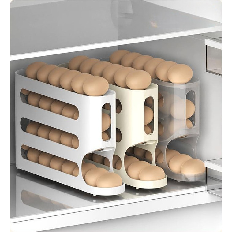 HL0762 Rak Telur 4 Tingkat Bergulir Otomatis Kotak Penyimpanan Telur Wadah Penyimpanan Telur