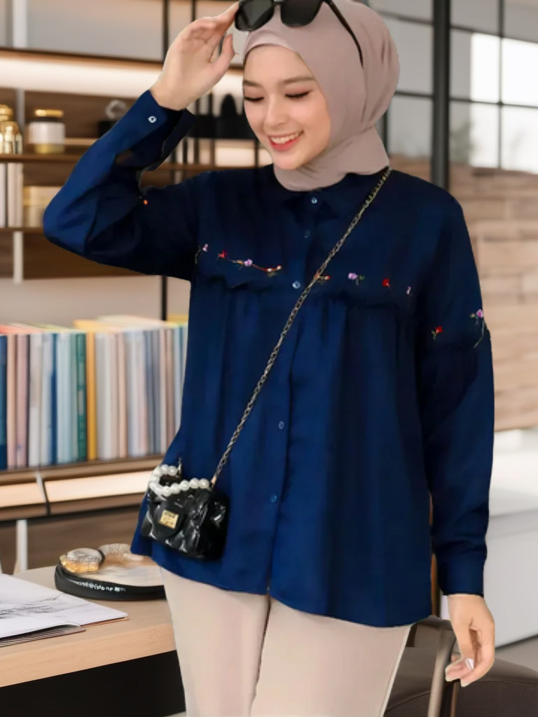 (Gratis Ongkir) Atasan Kemeja Wanita Embroidery