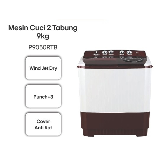 Mesin Cuci Twin Tub 9kg - Top Load Roller Jet Pulsator 3 Punch Wind Jet Dry | P9050RTB