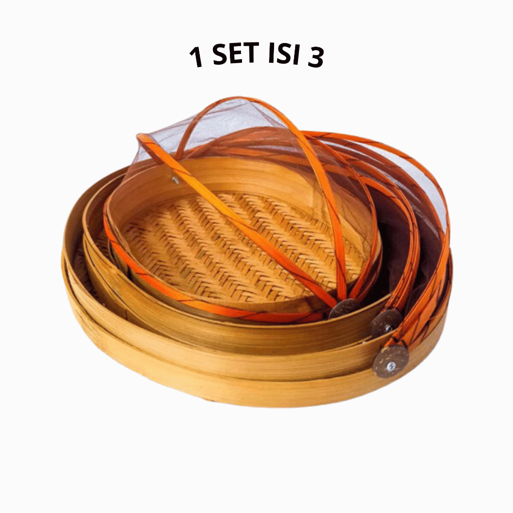 Tudung Saji Bambu Oval - 1 Sett Tudung Saji Bambu Isi 3pcs - Anyaman Bambu