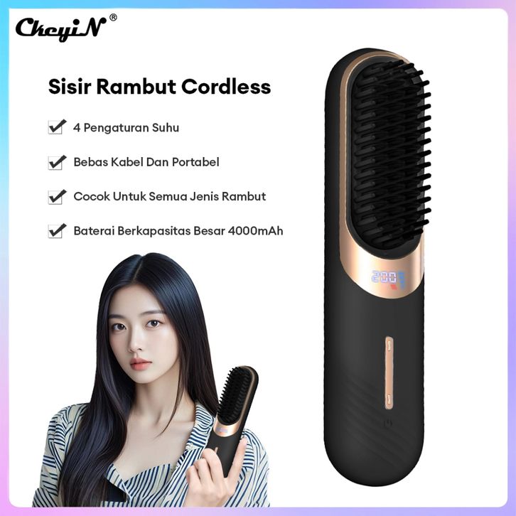 Sisir Pelurus Rambut Ckeyin Cordless Hair Straightener 4000mAh Rambut Listrik Nirkabel Hair Comb