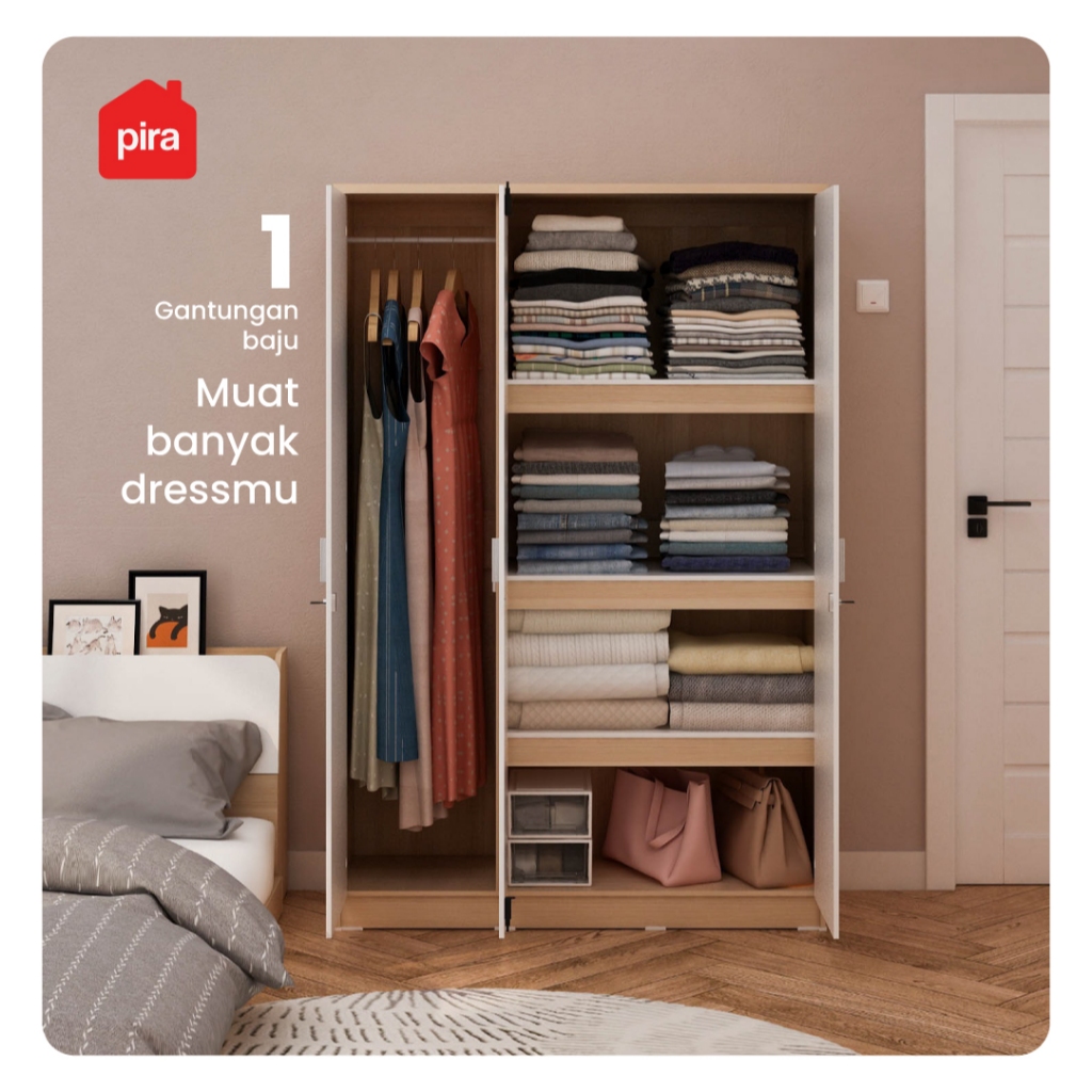 LEMARI PAKAIAN KAYU METROPOLIS MINIMALIS MODERN ARUNA LEMARI PAKAIAN MEDIUM 3 PINTU FULL RAK HIGH QUALITY CICILAN DP 0