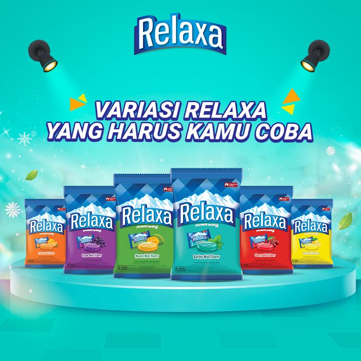 Permen / Candy Relaxa Mint 108 Gr Barley / Jelai, Orange / Jeruk, Grape / Anggur, Lemon, Mango / Mangga, Cherry / Ceri
