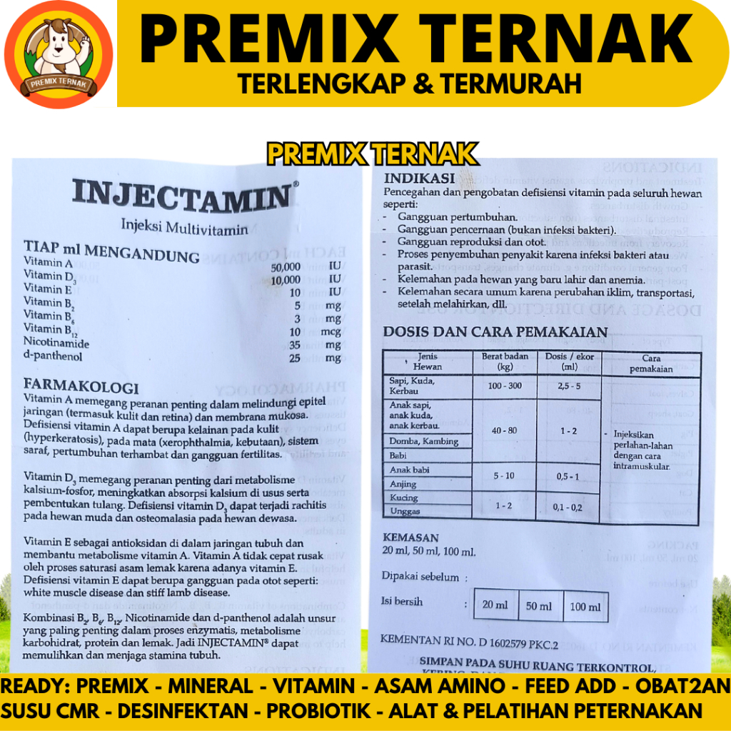 INJECTAMIN 100 ML INJECTAMIN 50 ML INJEKTAMIN SANBE - Multivitamin Dosis Tinggi Untuk Hewan Sapi Kambing Domba Kucing Ay
