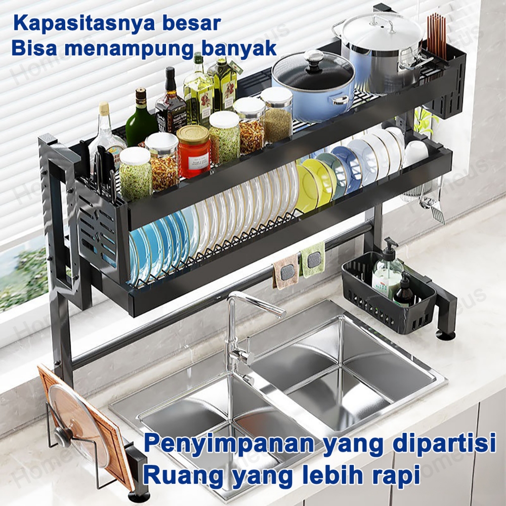 Homeus Rak Piring Rak Cuci Piring Wastafel Rak Dapur Anti Karat Stainless Steel Rak Piring Dengan Aksesoris