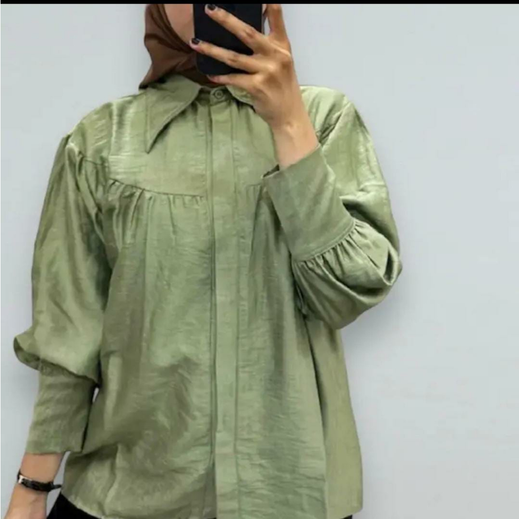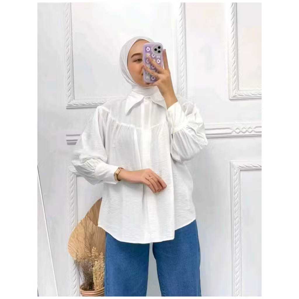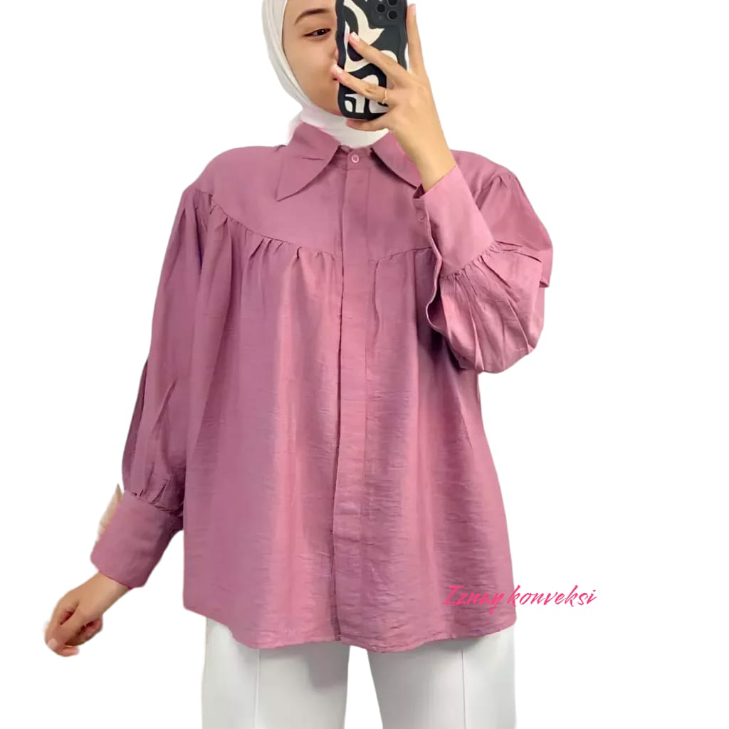 (Gratis Ongkir) Kemeja Blouse Sisil Polo Linen Lengan Balon Oversize