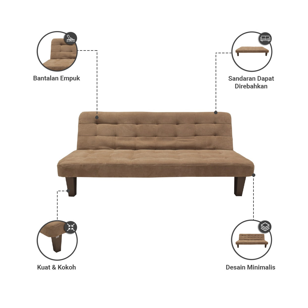Sofa Bed Fabric - Cokelat Tempat Duduk Multifungsi Sofa Tidur 2In1 Kursi Santai Serbaguna Furniture Rumah