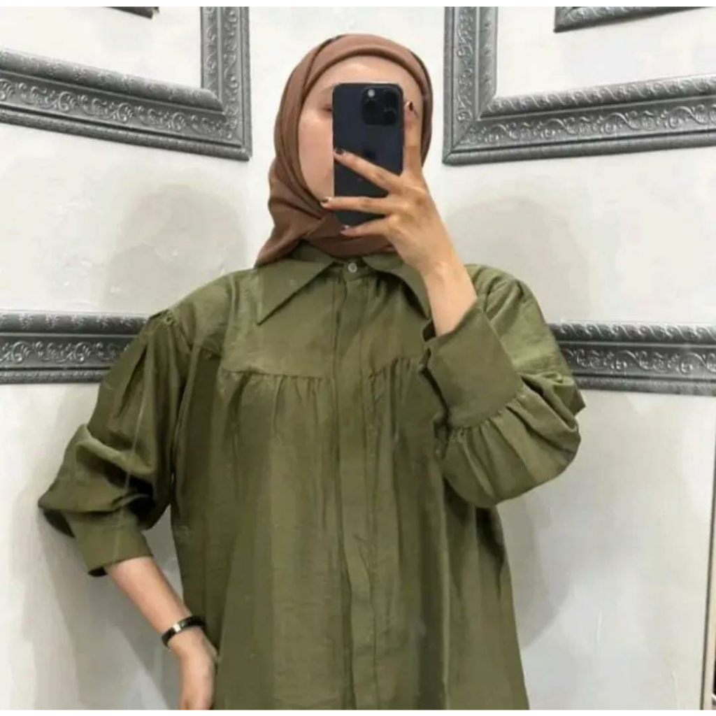 (Gratis Ongkir) Kemeja Blouse Sisil Polo Linen Lengan Balon Oversize