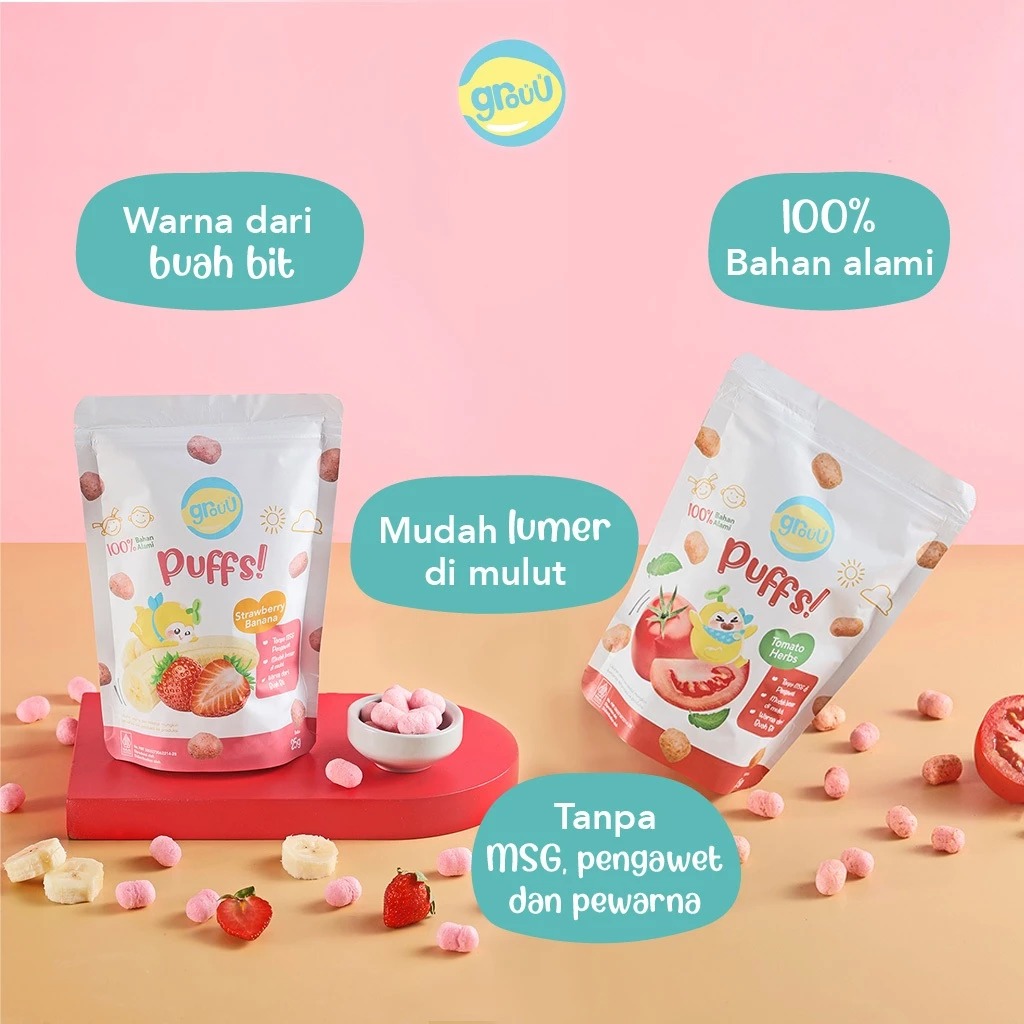 Grouu Snack Bayi Puffs! Strawberry Banana/Tomato Herbs Camilan MPASI Sehat NO MSG