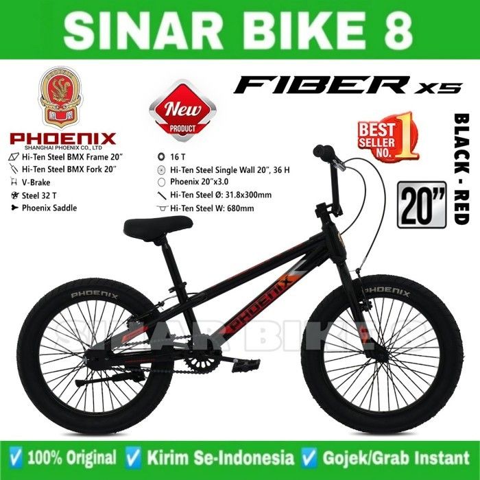 Sepeda BMX PHOENIX FIBER X5 20 Inch Ban 3.0 Untuk Usia 8-10 Tahun