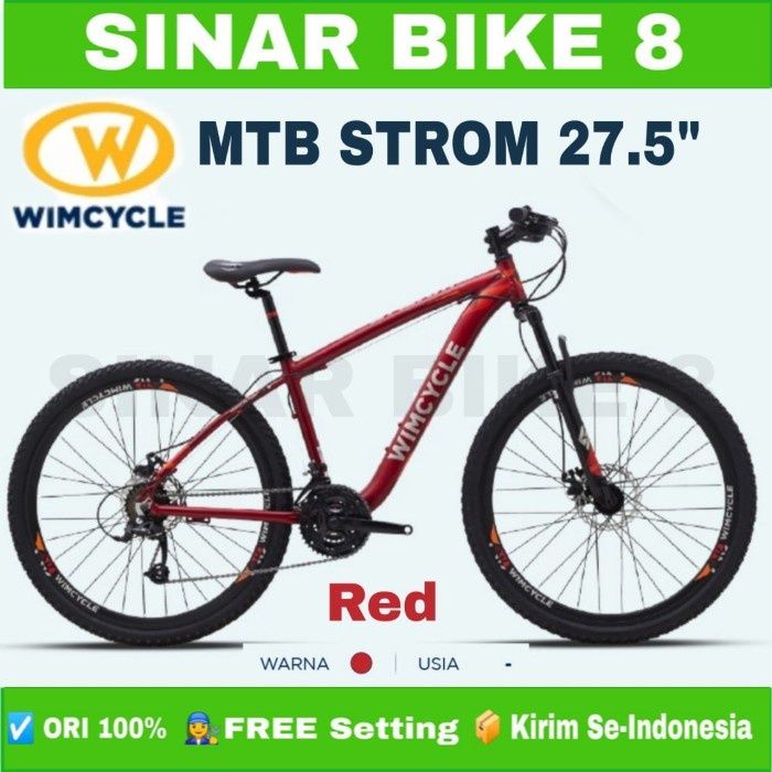 Sepeda Gunung Ukuran 27.5 Inch MTB WIMCYCLE STROM Alloy 3x8 Speed Rem Cakram