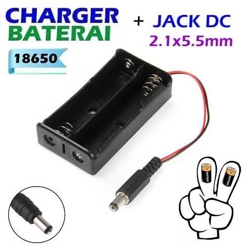 Tempat dudukan baterai 18650 double / battery holder 18650 dual batre - PLUS JACK DC