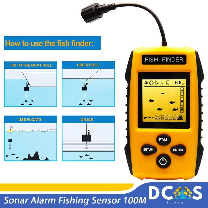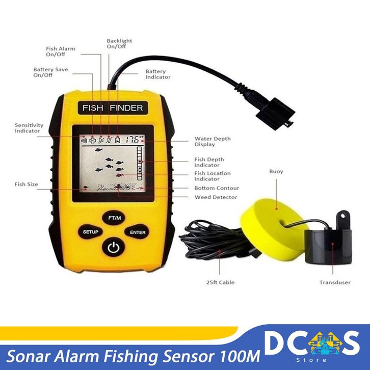 Sonar Alarm Fishing Sensor 100M Portable LCD Fish Finder Detector