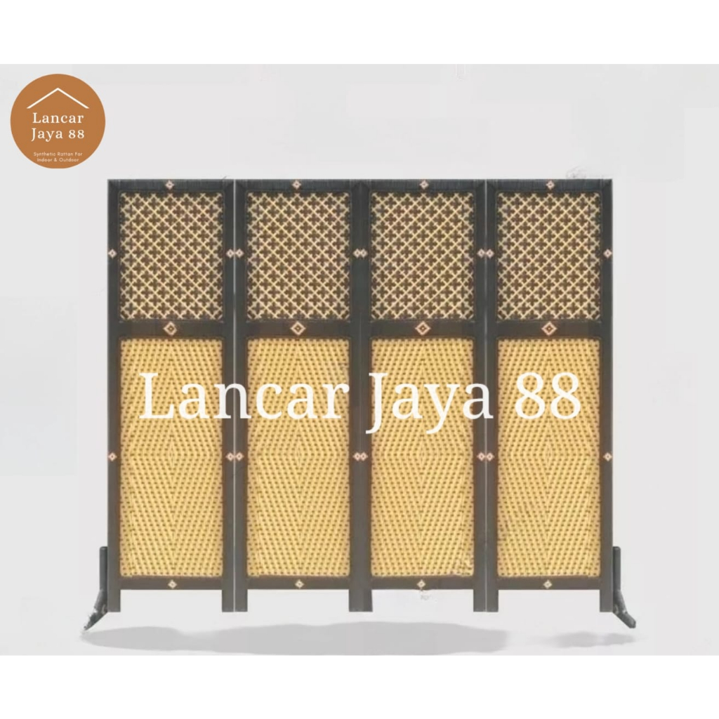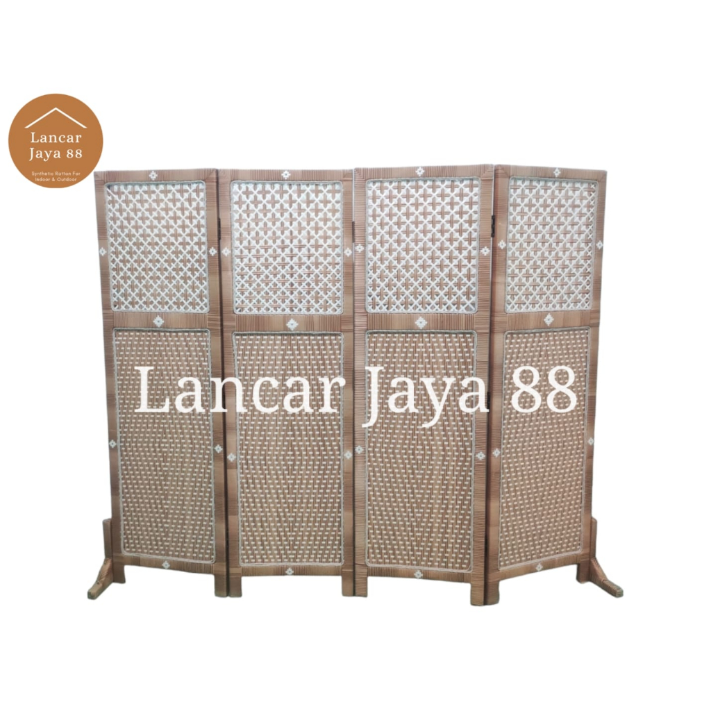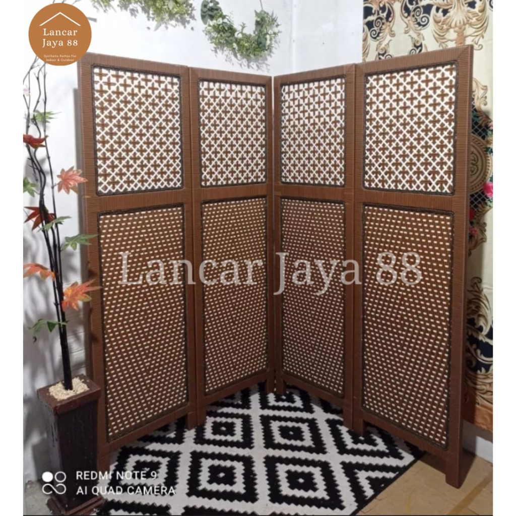 Sketsel Ruangan Rotan Sintetis 4 Pintu Tinggi 170 Cm Pembatas Ruangan Rotan Aesthetiq