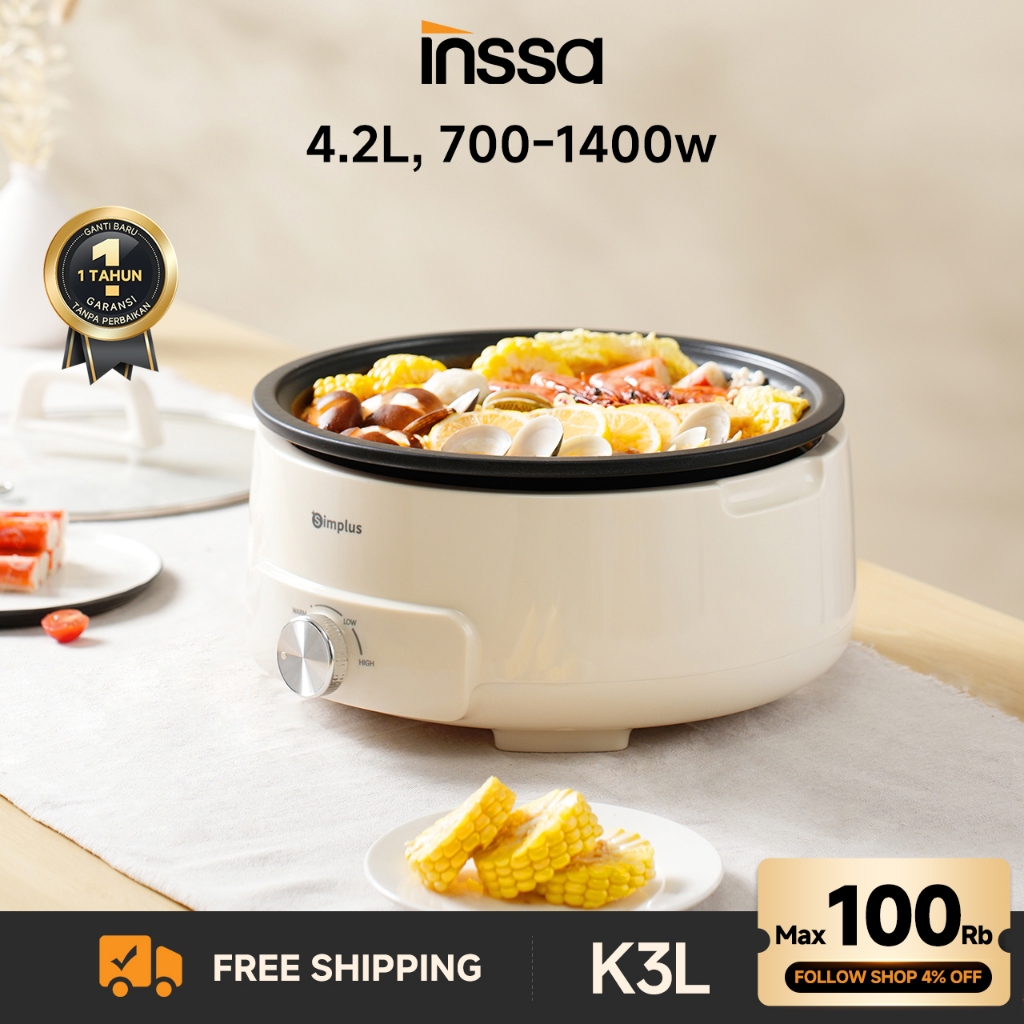 INSSA X Simplus Panci Listrik Multifungsi 4.2L Anti Lengket ,Mudah Dibongkar untuk Pembersihan 700w