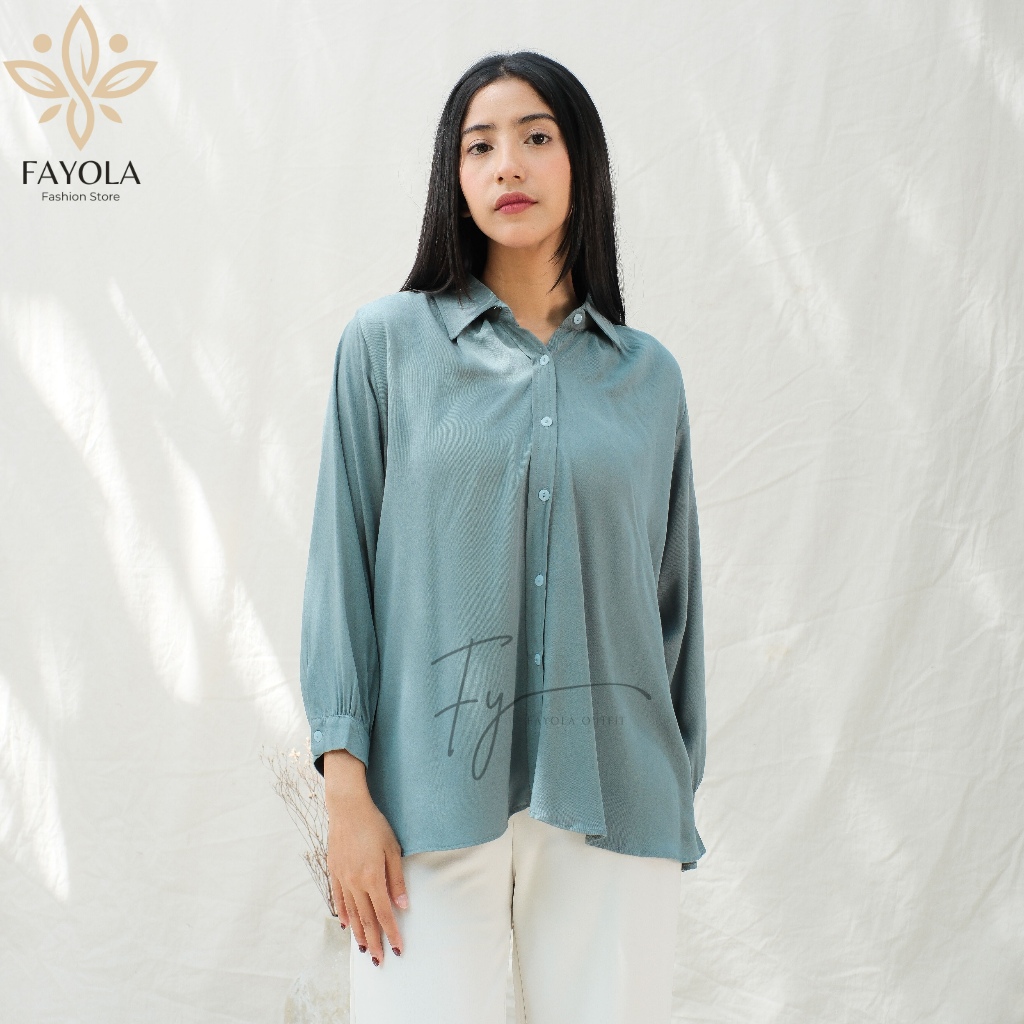 (Gratis Ongkir) KEMEJA BASIC POLOS WANITA BAHAN RAYON TWILL PREMIUM - BLOUSE KERJA OVERSIZE