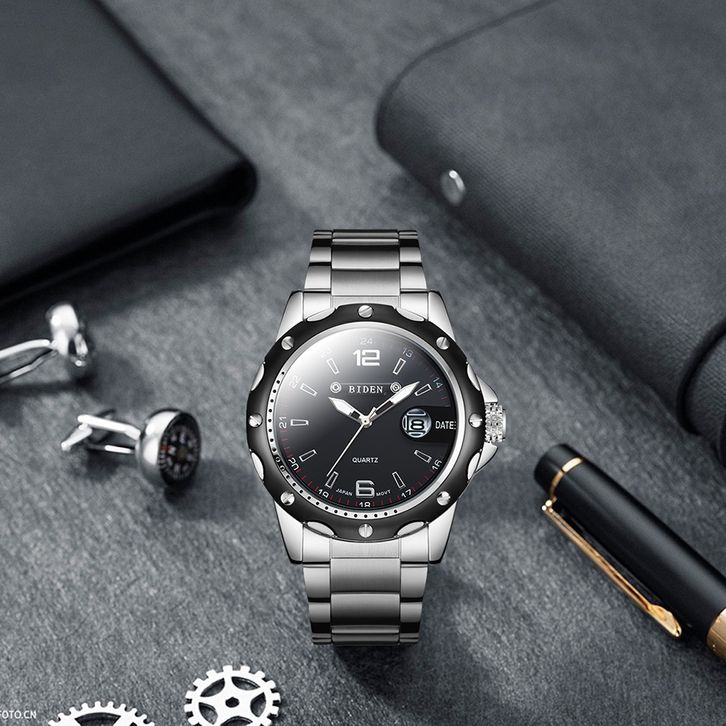 Jam Tangan Stainless Steel BIDEN Pria – Kuarsa Otomatis & Stylish