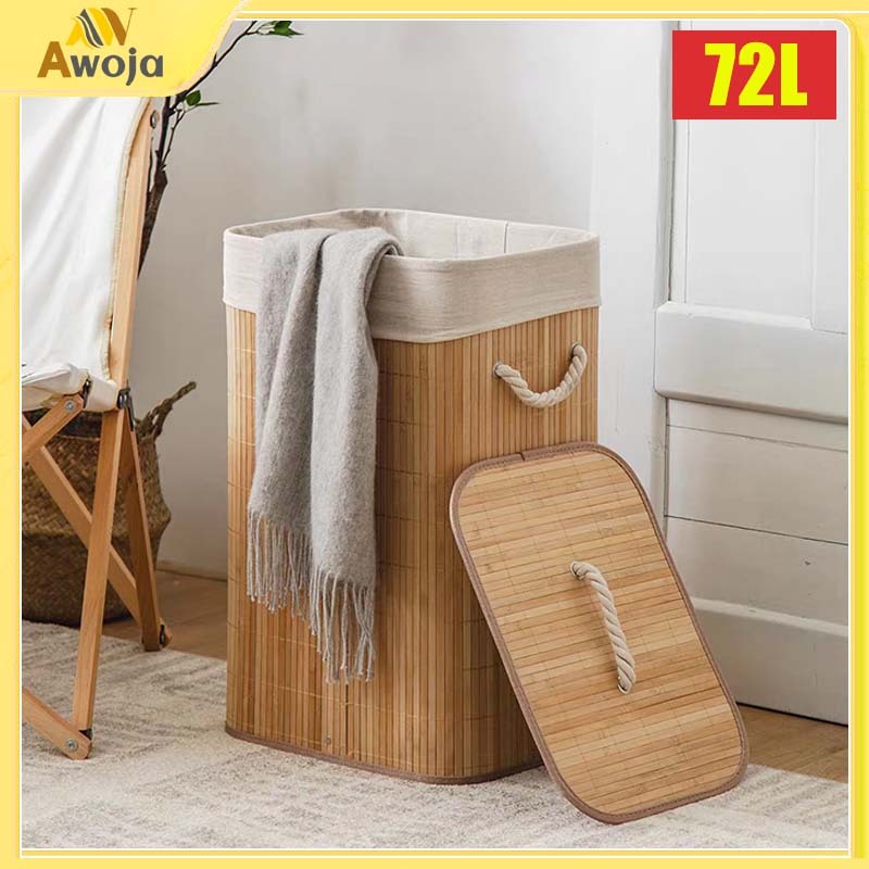 【72L】Keranjang Laundry Rotan Laundry Kotor Bag Basket Dengan Tutup Tas Cucian Lipat Pakaian Kotor Tempat Penyimpanan Mai