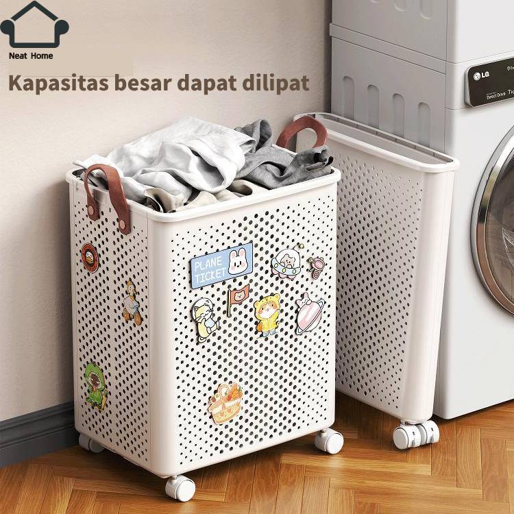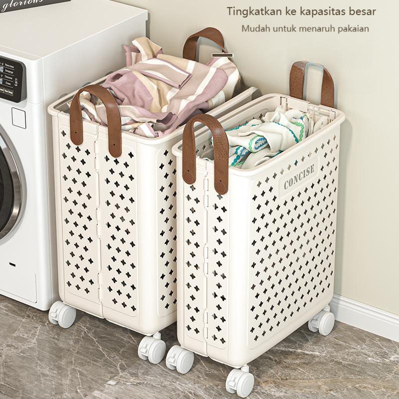 Keranjang Cucian Keranjang Pakaian Kotor Serbaa Keranjang Pakaian lipat Dengan Roda