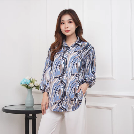 BLOUSE MARBLE WANITA / ATASAN BLOUSE SHAKILA PREMIUM / KEMEJA MOTIF TERBARU