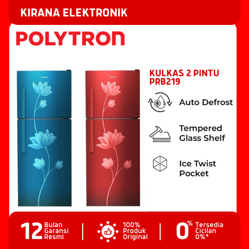 POLYTRON KULKAS 2 PINTU JUMBO BELLEZA VARIA PRB 219 LEMARI ES LOW WATT PENDINGIN FREEZER MINUMAN MURAH TERBARU TANPA DP