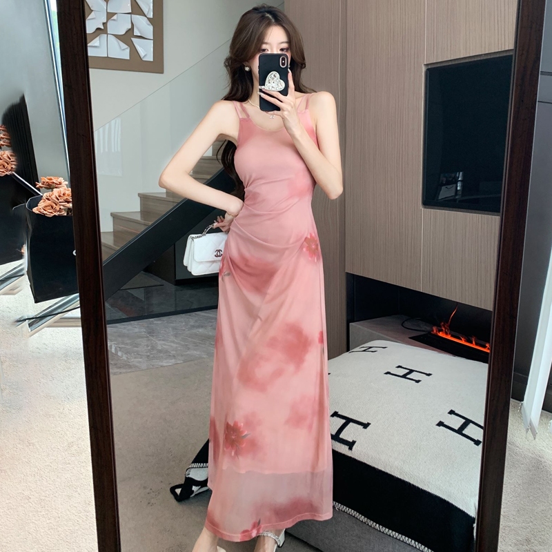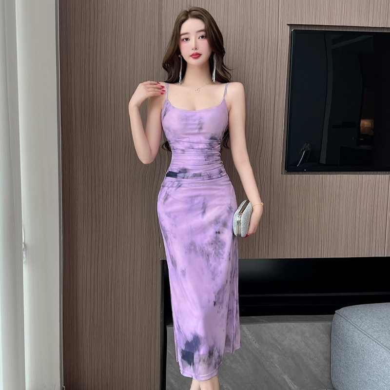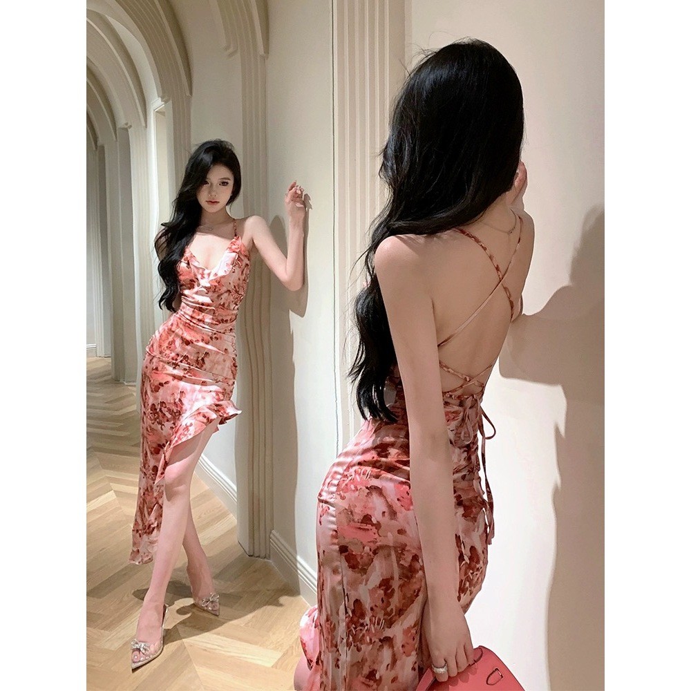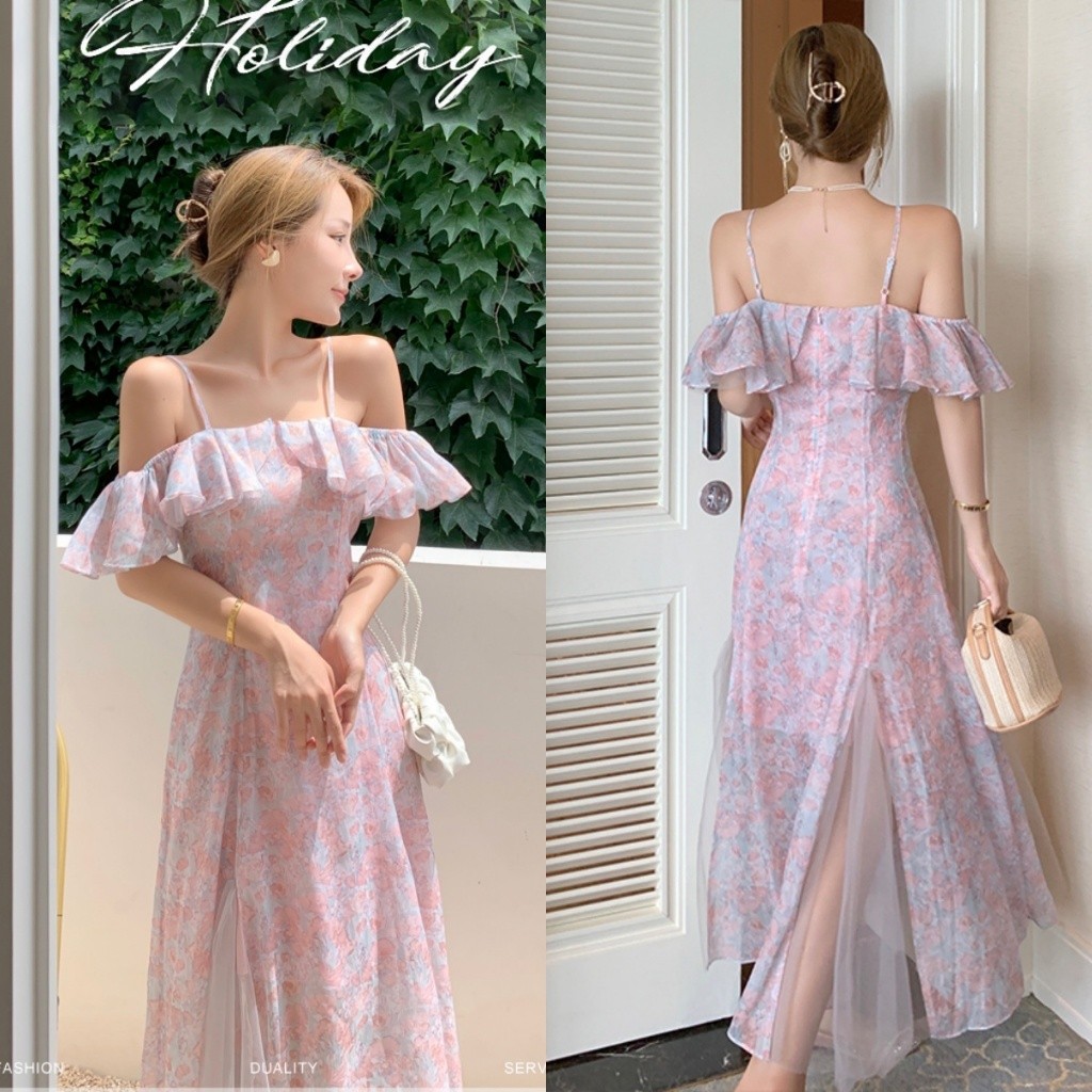 EMITA BLOOM purple dress party le dress Serut press body tanpa lengan floral long dress cantik ke pantai wanita kekinian