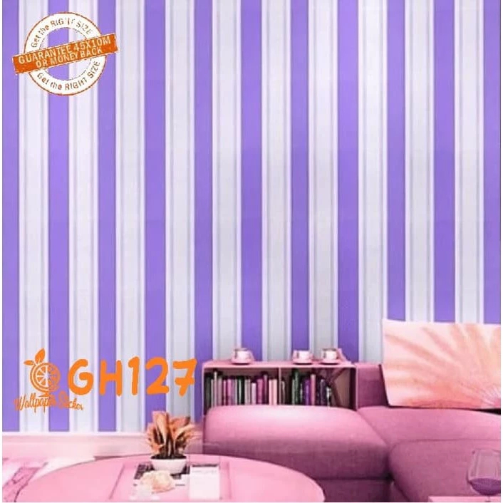 Wallpaper Dinding Roll Murah Motif Stripe Pink Series Premium Wallstiker Ruang Tamu Kamar Tidur Ukuran 8mx45cm Terlaris