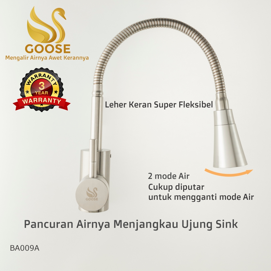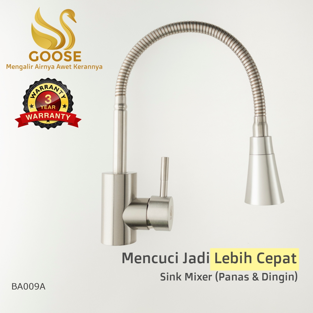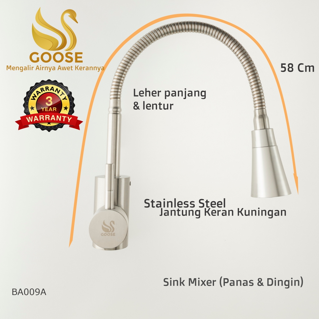 Kran Sink Mixer Terompet Cuci Piring Stainless 304 Panas Dingin Fleksible GOOSE HD-BA009A