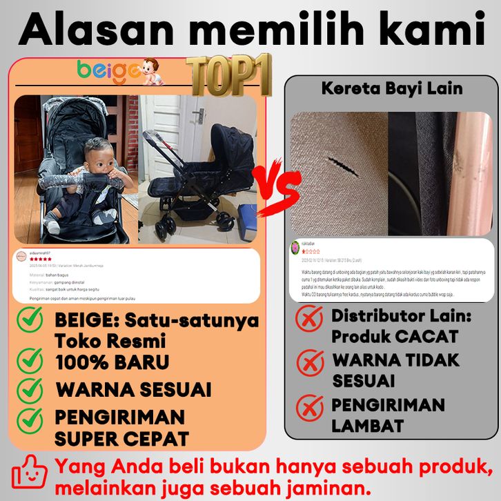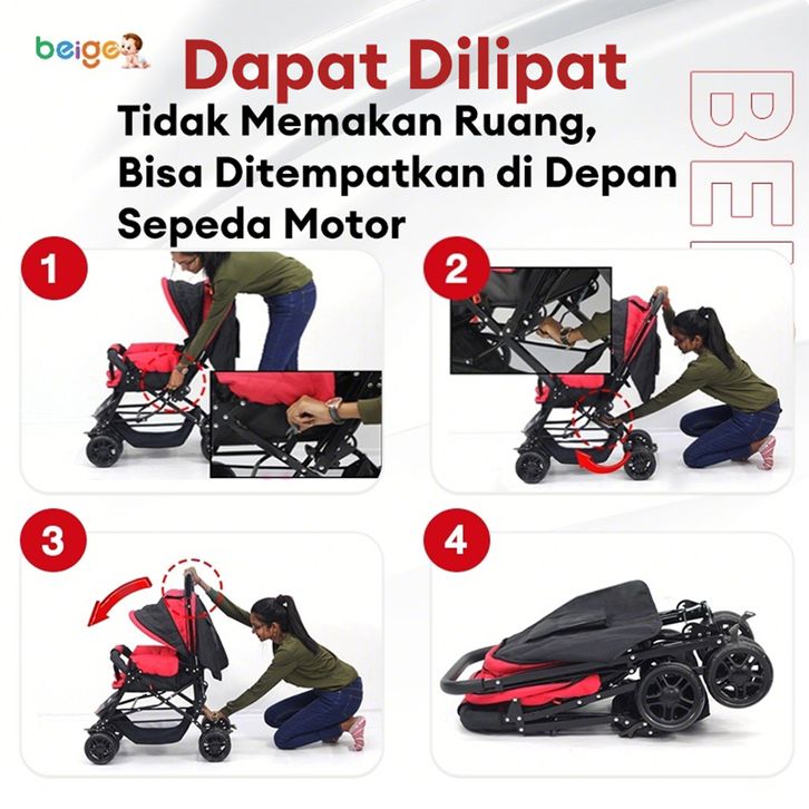 BEIGE Stroller Bayi 1-Tombol Lipat Portabel Travel Ringan Mudah Dibawa Cocok new baby