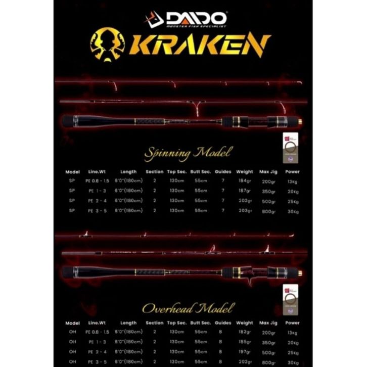 JORAN DAIDO KRAKEN LIGHT JIG 1.80M || READY SPIN DAN OVERHEAD JORAN PANCING ALAT PANCING
