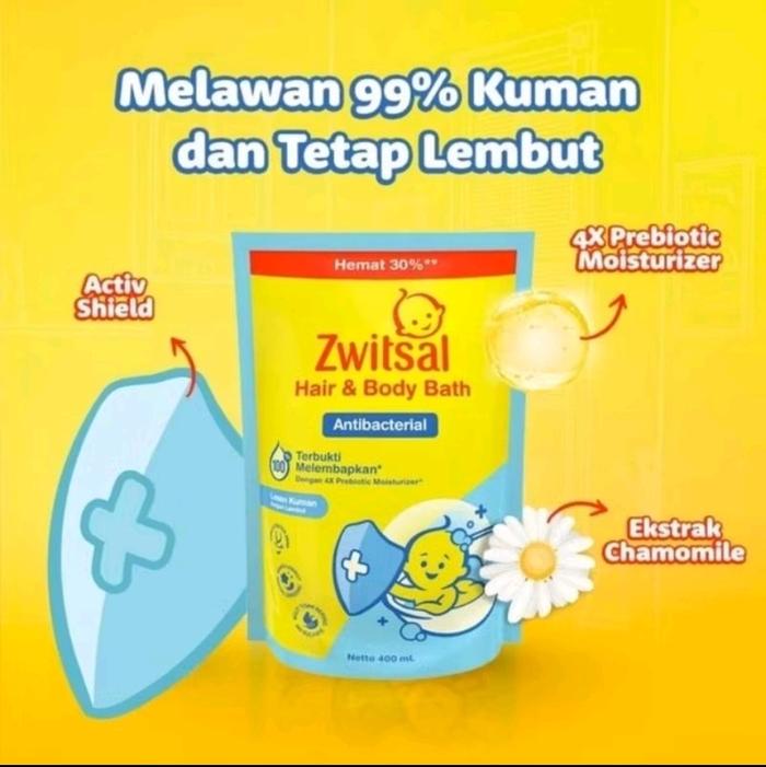 Promo Zwitsal Hair & Body Bath Antibacterial 400ml Refill Promo