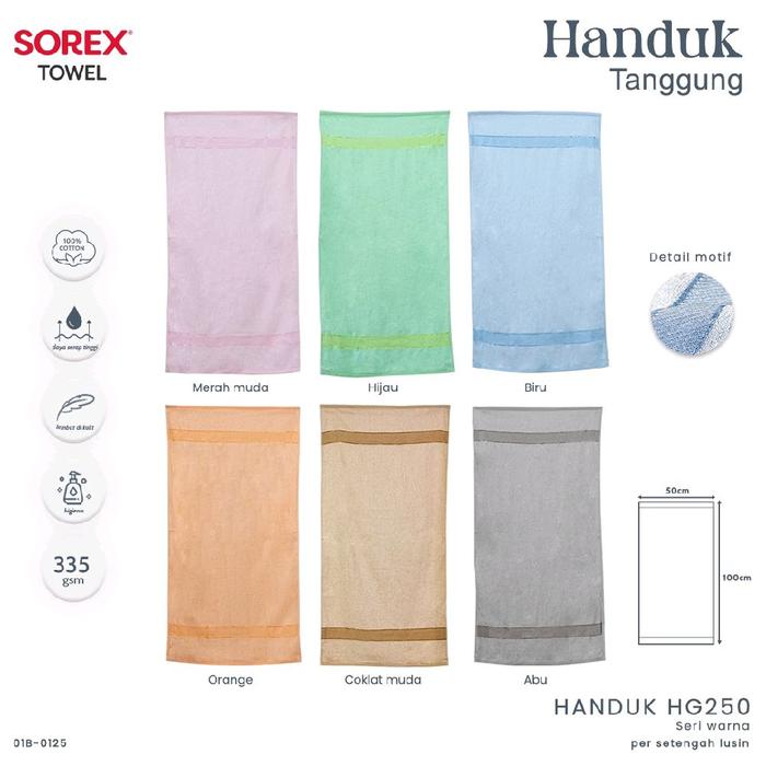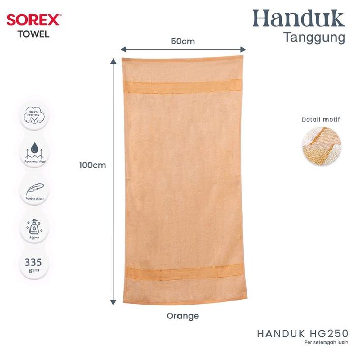 Murah Sorex Handuk Mandi Cotton Towel 50x100cm HG250 - Handuk Daya Serap Tinggi Bahan Katun - HG250 Orange Promo