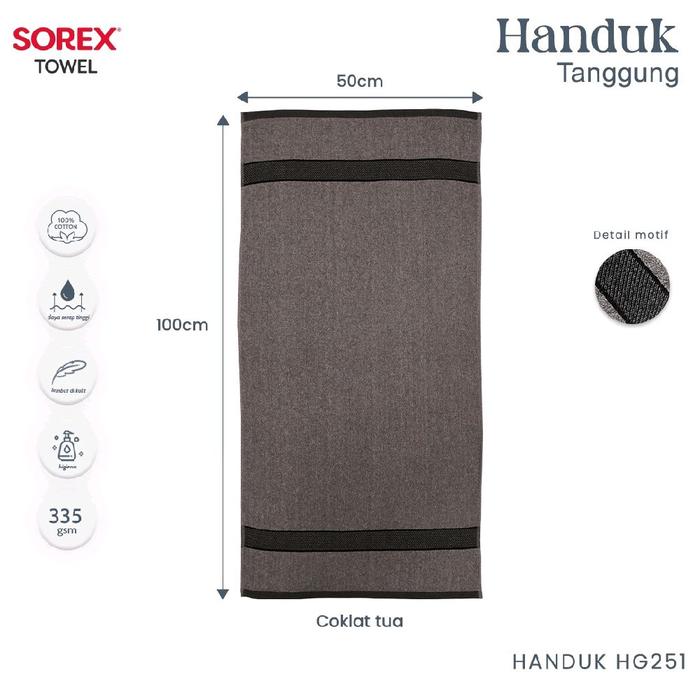 Terlaris Sorex Handuk Mandi Cotton Towel 50x100cm HG251 - Handuk Daya Serap Tinggi Bahan Katun - HG251 Abu Promo