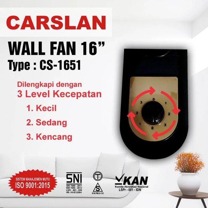 [ GUDANG SAUDARA ] Kipas Angin Tornado Wallfan/ Kipas Dinding Tornado 16inch Carslan CS-1651 kip as/ Kipas minimalis