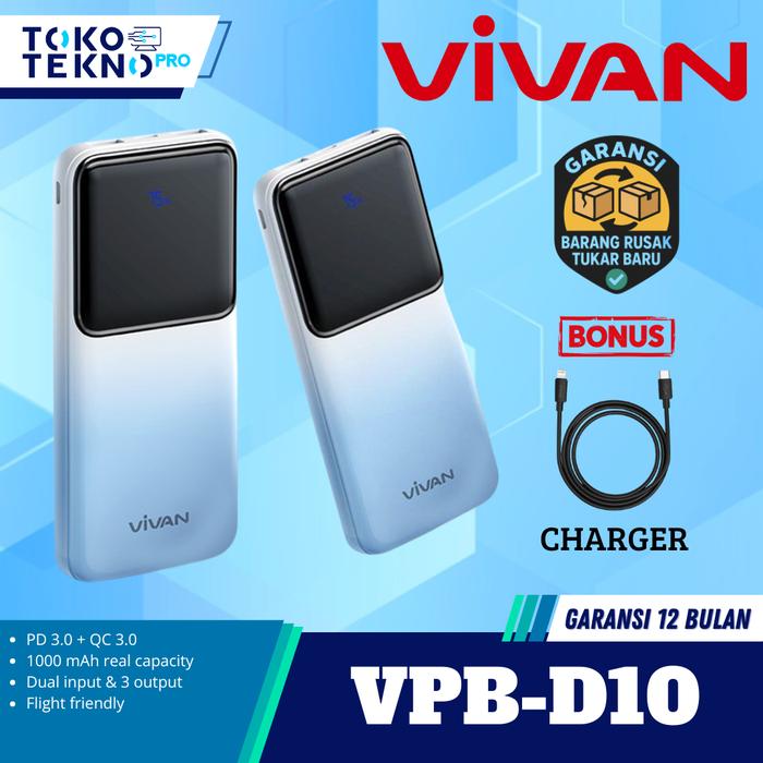 Promo Vivan VPB-D10 10000mAh Powerbank 10000mAh Fast Charging QC 3.0