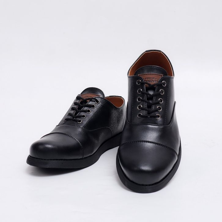 Sepatu Pantofel Pria MNDY Official - Oxford Full Black -Pria Formal Kantor Kulit Kerja Resmi Original