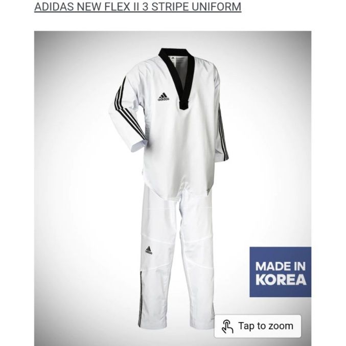 Dobok Taekwondo Adidas Adiflex 3 Stripes Putih Polyester