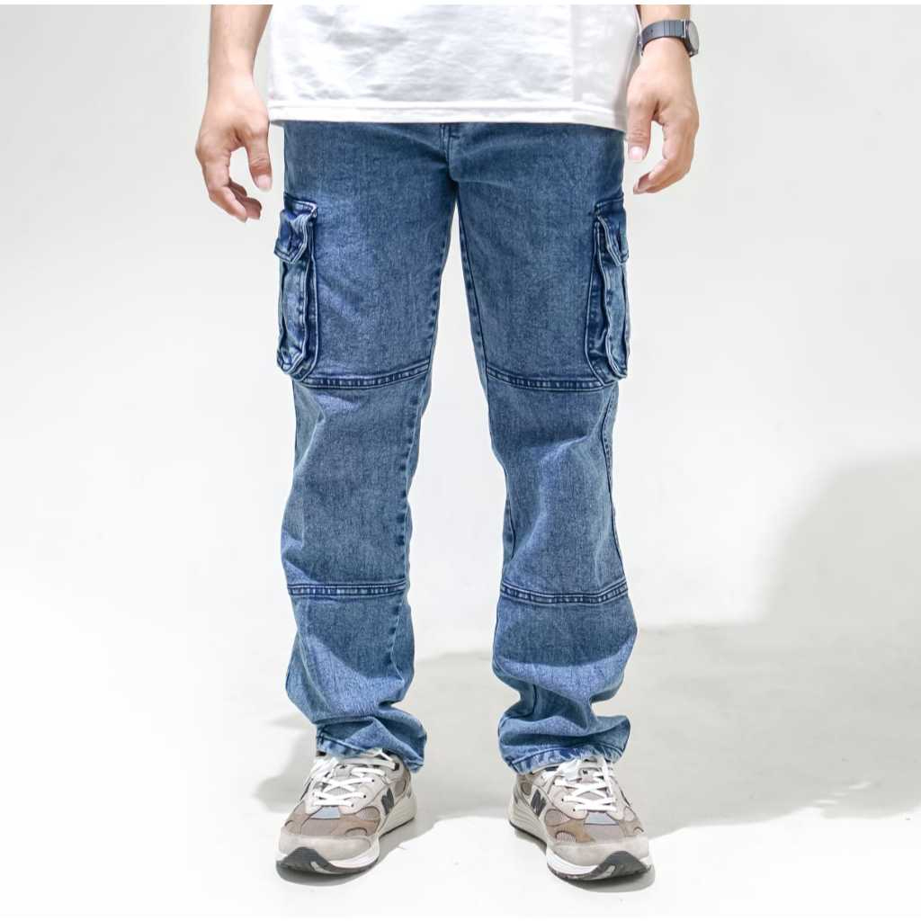 SENSORLINE - JEANS CARGO PANJANG PRIA BLUE WASH - UNISEX STYLE STRETCH celana cargo pria / celana cargo wanita