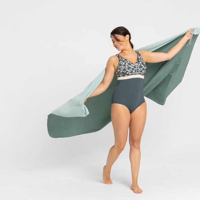 Decathlon NABAIJI Handuk Renang Microfibre Bergaris- Ukuran XL 110 x 175 cm Hijau Tua - 8857730