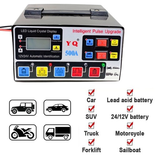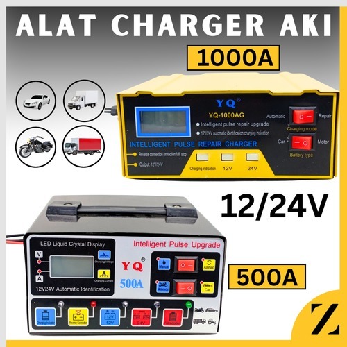 Alat Charger Aki Motor Mobil 1000A 500A 1000 500 A 12V 24V Alat Cas Aki Pengisi Daya Kendaraan Kapal Truk Intelligent Pu