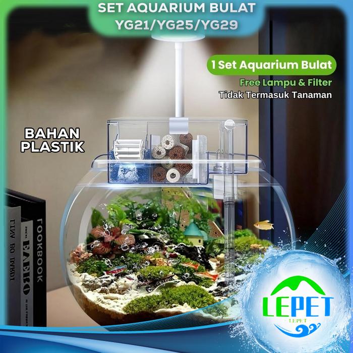 LEPET 1 PAKET AQUARIUM BULAT PLASTIK YG21/YG25/YG29 Akuarium Ikan Cupang Hias / Kura