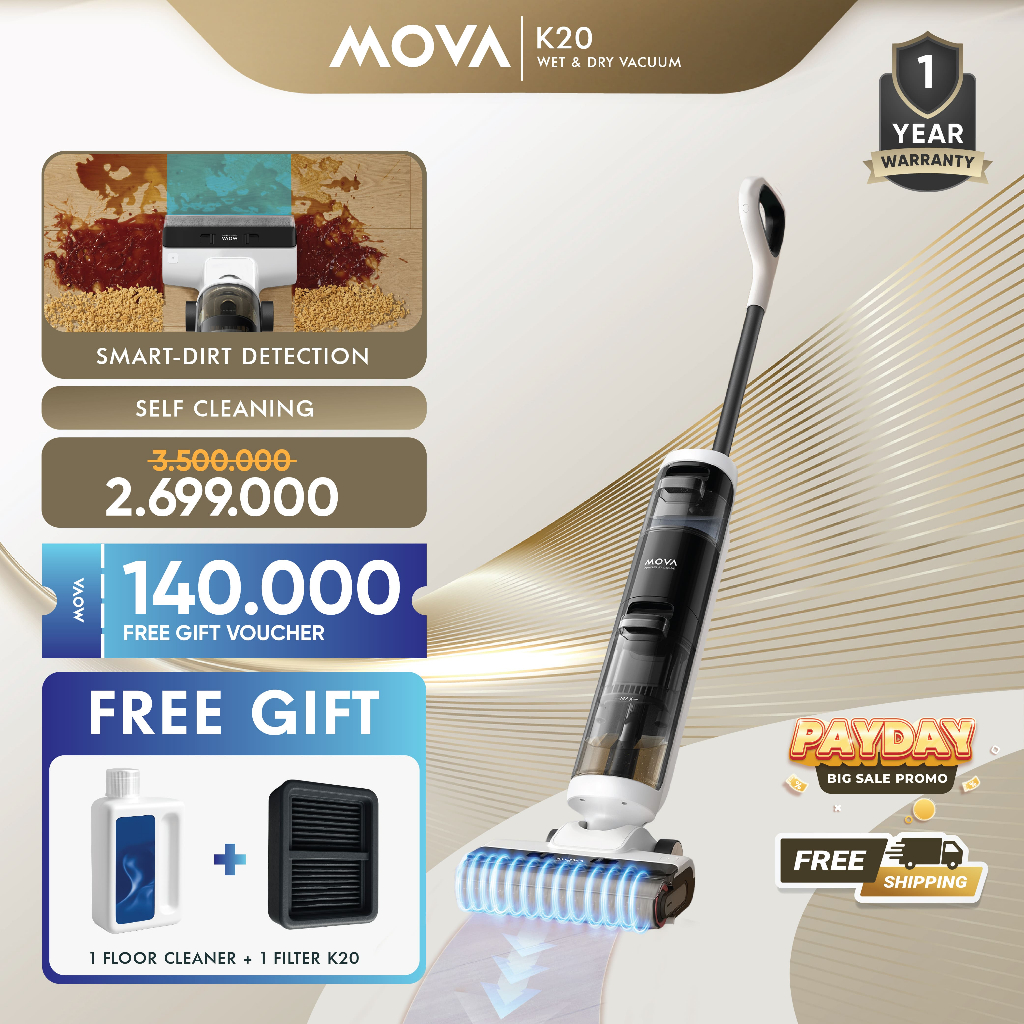 Mova K20 Powerful Wet And Dry Cordless Vacuum Mop Scrubber Washer | Self Cleaning | Edge Cleaning | Vakum Penyedot Debu