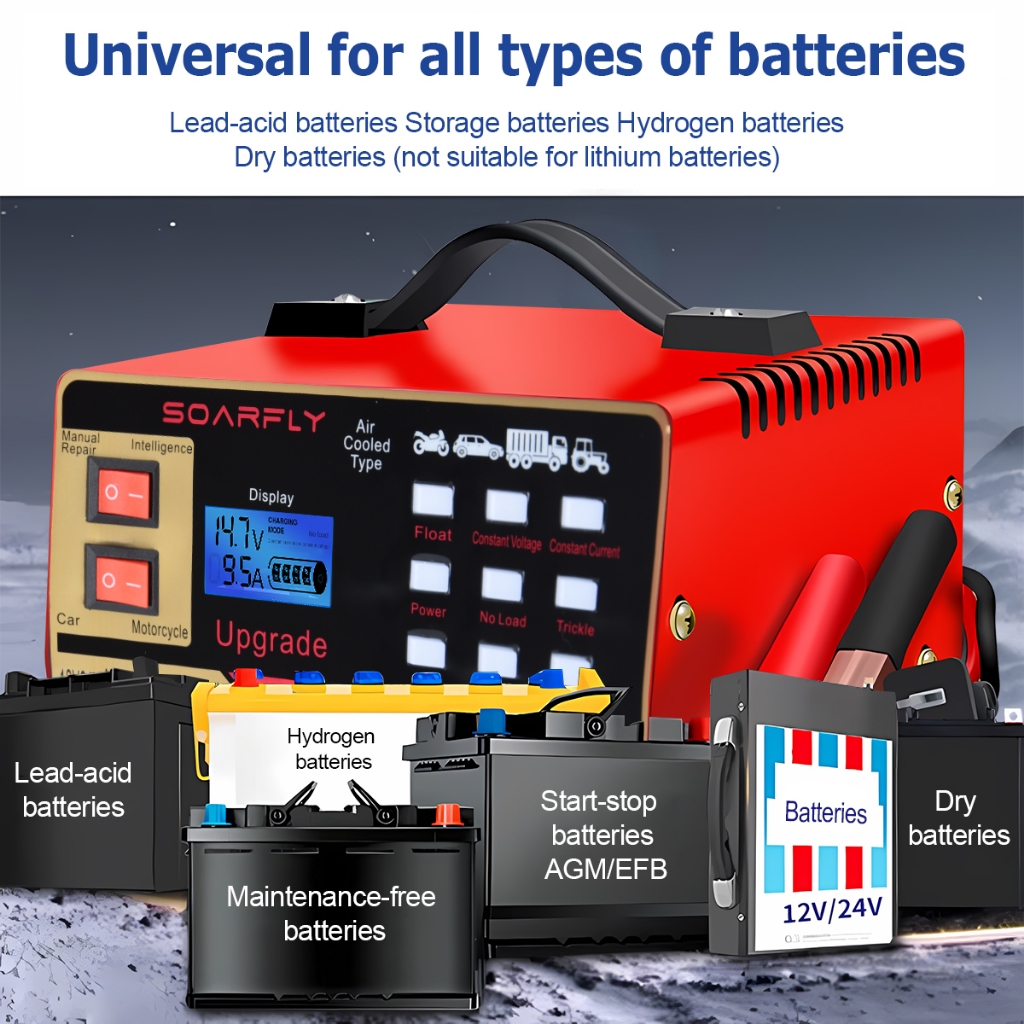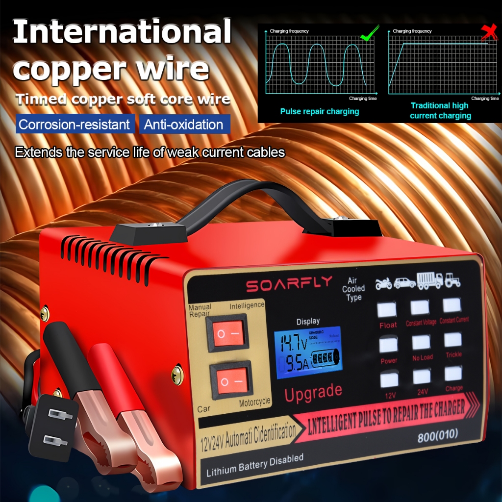SOARFLY Car Battery Charger 12V/24V Charger Aki Mobil Motor Smart Battery Charger Cas Aki Mobil Charger Aki Apr