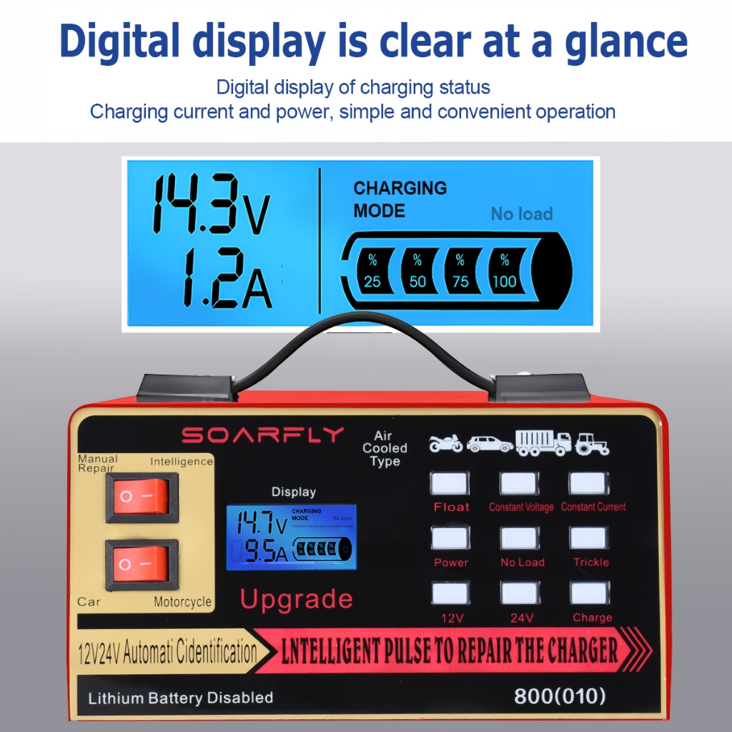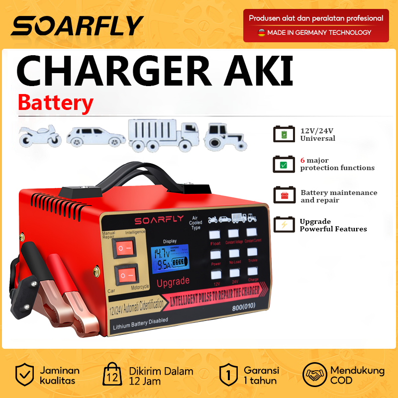 Soarfly Tools Battery Charger Motor Mobil12V/24V 1200A Charger Aki Otomatis Casan Aki Motor Cas Aki Mobil AkiChargerJele