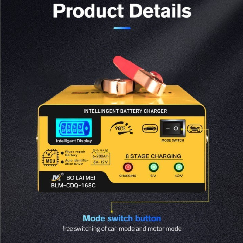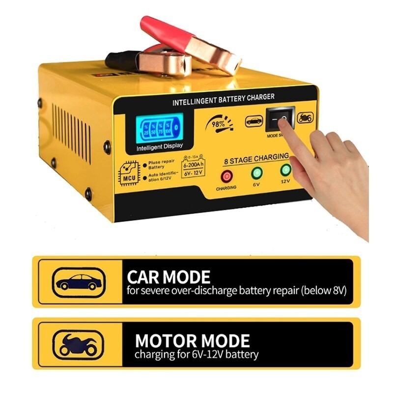 Charger Aki Mobil Portable Otomatis Auto On Off Dan Motor Otomatis Cas Accu Kering Dan Basah 250W 12V/24V 200AH Alat Pen
