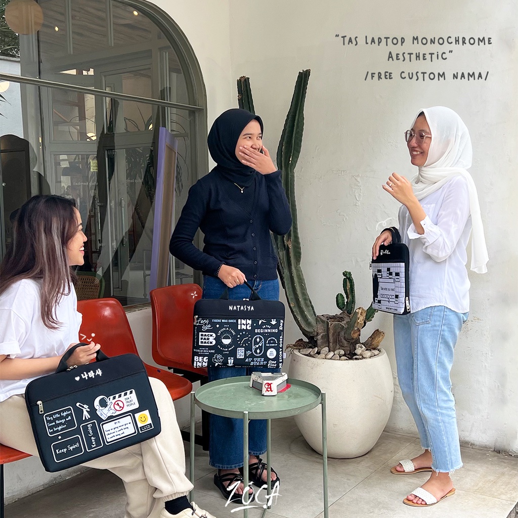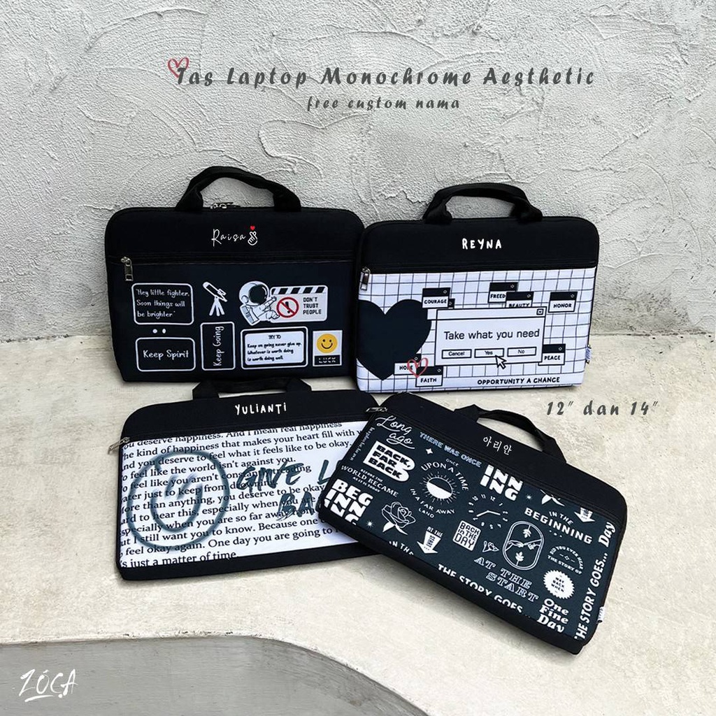 ZOCA TAS LAPTOP MONOCHROME AESTHETIC 12" 14" / TAS LAPTOP JINJING (FREE CUSTOM NAMA)
