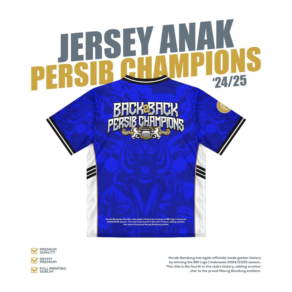 JERSEY RETRO // KAOS JERSEY ANAK PERSIB CHAMPIONS 2024/2025 TERBARU // TERLARIS
